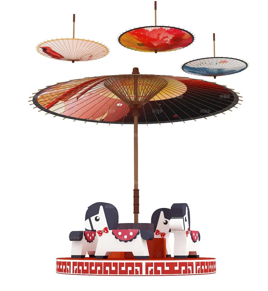 3.油紙傘轉馬煙雨蒙蒙,小朋友們來到了江南,這里青石綠苔,雨點打在紅瓦上,濺起漣漪。我們的小轉馬,做成了油紙傘的造型,在下面就仿佛來到了別樣的江南,轉上一圈,別有一番滋味?!狤ND—何處是神州?“讓我們走進國風樂園,體驗真正的中華文明吧!”