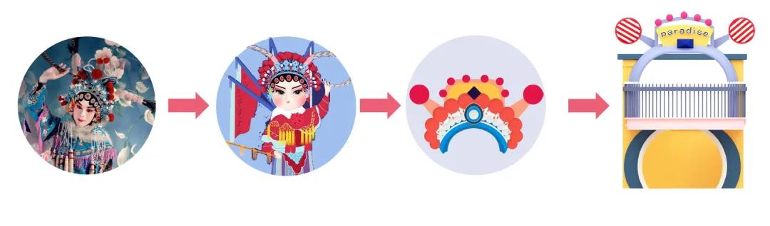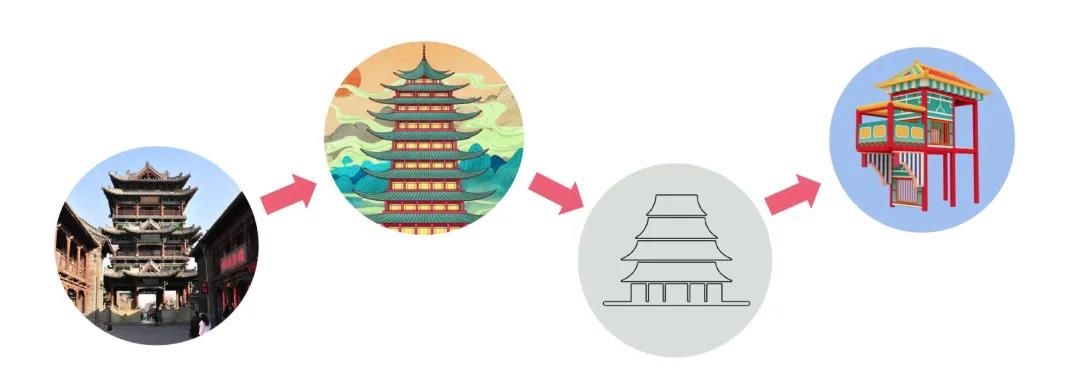 (門頭造型設計)在造型設計上,我們利用各種中國傳統文化造型,提取其精髓元素,對圖形進行抽象處理,來創造一個既國風味十足又不老氣的親子樂園。
