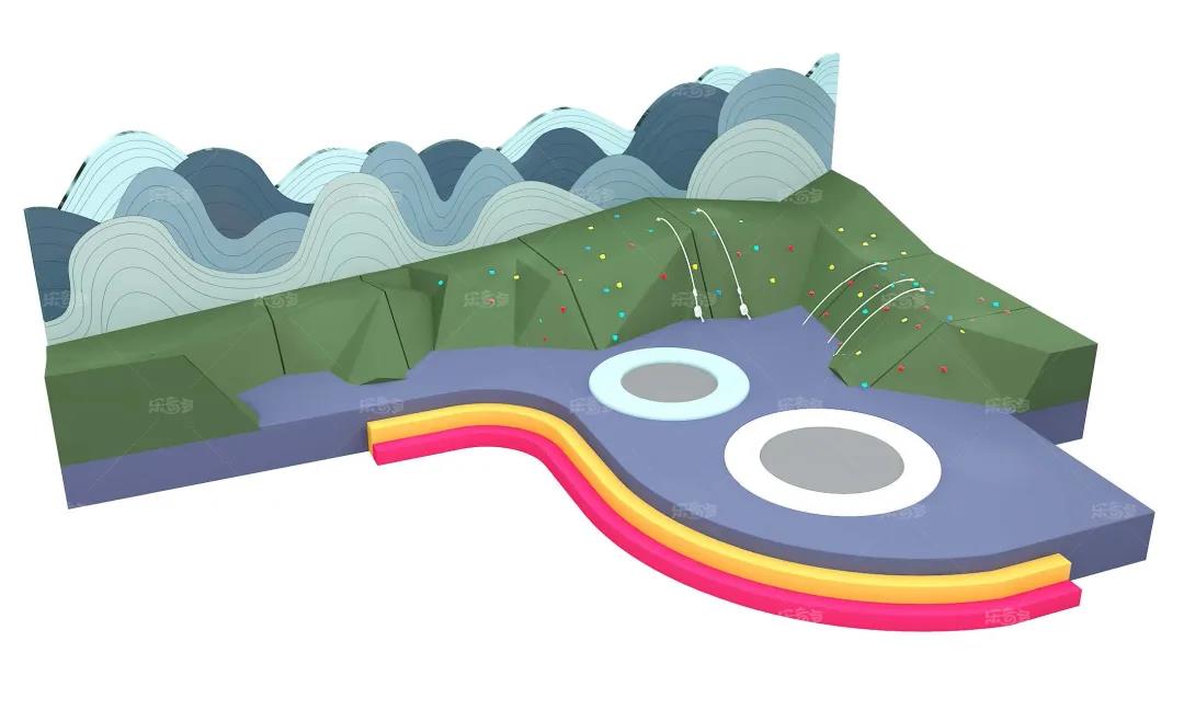 2.山坡攀爬直徑1.8-2.5M的圓形蹦床,彈力適中,適合4-8歲低齡兒童游玩, 深受小朋友喜愛。桂林山水甲天下,在這里我們模擬了桂林的山貌,小朋友可以通過自己的努力,攀上這些奇峰峻嶺。